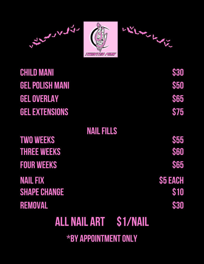 Hello!I'm Amanda Macintosh (she/her). I am the owner, and sole nail technician of Twisted Pink Nail Design. I graduated from Elevate Beauty in New Minas, in 2022 and I've been pursuing my love for nail art and nail care ever since.Due to either mobility or lack of knowledge, a lot of people can't look after their hands and feet properly. It's amazing how many people go through life in pain or embarrassed when there is just no need for it!! We only have one set of hands and feet and we should take the time to take care of them. Some people feel like they can do so much for everyone else, but then they ignore their own needs, when we can't pour from an empty cup. My goal is to help people take some time for themselves to look and feel confident about their nails. I will happily work with you to achieve the healthy, beautiful nails you've always dreamed of!Twisted Pink is a sensory friendly, and openly queer friendly space. So don't be shy, and drop us a message on Facebook to book an appointment!